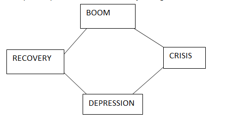 This is the period of total decline in the economy or stagnation of the economy. It has the following characteristics;
